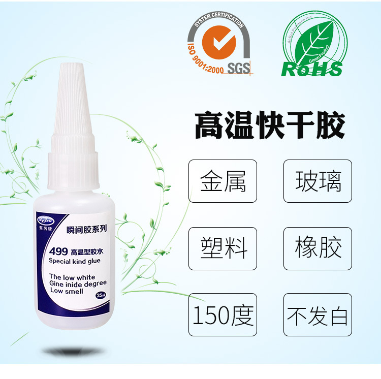 2、使用JL-499金屬高溫瞬間膠的時候,不要佩戴編織手套進行點膠,因為瞬間膠會被編織手套的材料吸收并且會產生大量的熱量灼傷皮膚;對于面積很小的金屬粘接,使用JL-499金屬高溫瞬間膠時需要在瓶口套上PE滴管或針頭,用來控制點膠量,避免點膠過多造成浪費及長時間不固化,而且溢出的金屬專用瞬間膠容易產生白化現象;