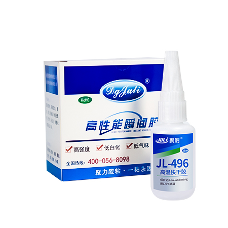 聚厲牌JL-496高溫瞬間膠水主成份氰基丙稀酸酯,符合環(huán)保標(biāo)準(zhǔn),已通過歐盟ROHS標(biāo)準(zhǔn)和SGS檢測.防水,耐高溫,用于金屬電鍍材料,塑膠,橡膠等之間的粘接,高強(qiáng)度,抗沖擊,抗剝離.單組分,耐老化等優(yōu)異性能.適合連續(xù)化生產(chǎn)線作業(yè)。