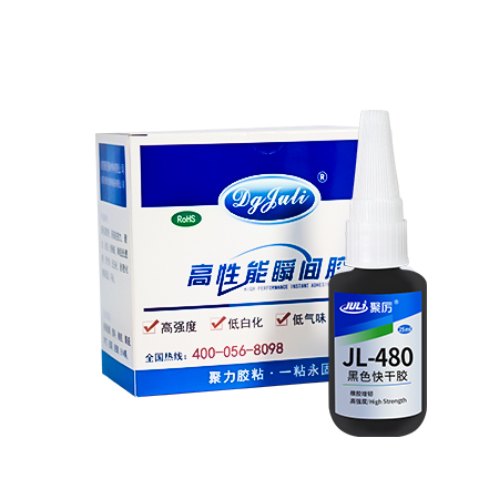 聚厲牌JL-480黑色橡膠瞬間粘合劑針對大部分塑料,橡膠,用于惰性材質;廣泛應用于塑料制品,電子電器,五金行業,汽車配件等行業。