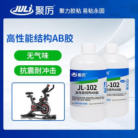 聚厲牌JL-102無氣味結構AB膠采用國外工藝技術研制而成,符合環保標準,已通過歐盟ROHS標準和SGS檢測,在常溫(25℃)下能快速粘接各類金屬同質或異質互相粘著,以及不銹鋼、 鋁合金、磁鐵、PC、ABS、硬質尼龍、PS、玻璃等材質,固化后膠膜韌性好,抗沖擊及剪切力強,耐候性佳.