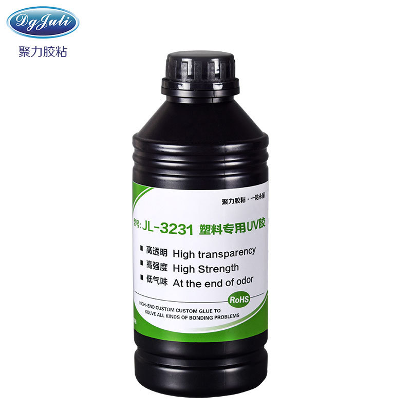 聚厲牌JL-3231塑料專用UV膠廣泛用于工藝品、禮品包裝、塑料掛鉤、電子電器、LED燈飾、醫療行業、玻璃制品行業等透明塑料材的強力粘接。具有耐老化、柔韌性好、刺鼻性氣味小、高透明耐黃變、等優點。